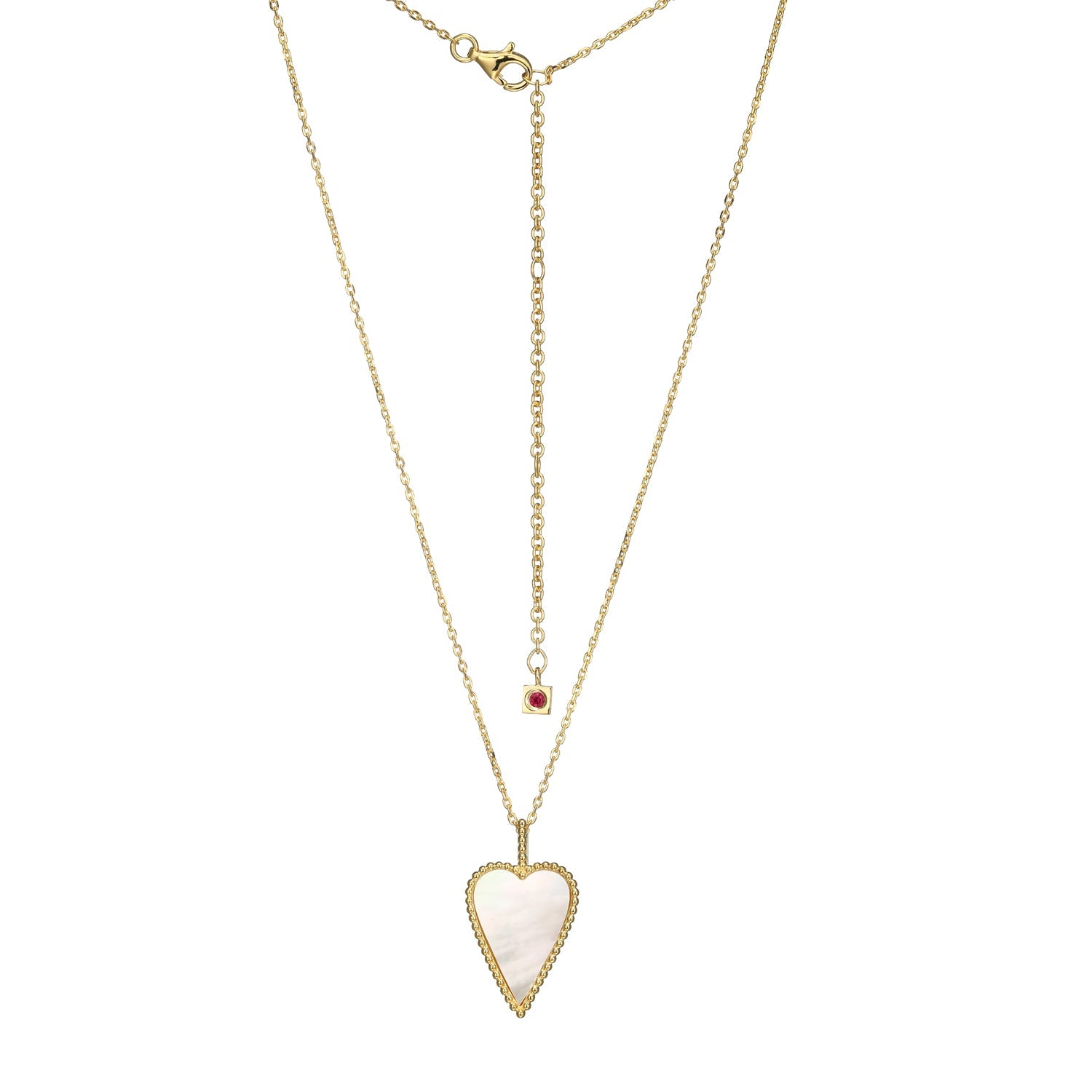 Sterling Silver ELLE "Long Love" Yellow Gold Plated MOP Heart Pendant on Faceted Diamond Cut Cable Chain 17" + 3"