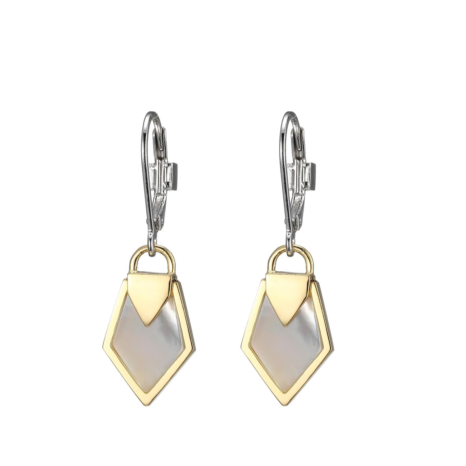 Sterling Silver Lock Earrings with White Mother of Pearl (11.5X8.5X4.5X1.25mm), Lever Back, 2 Tone, Yellow Gold and Rhodium Plated