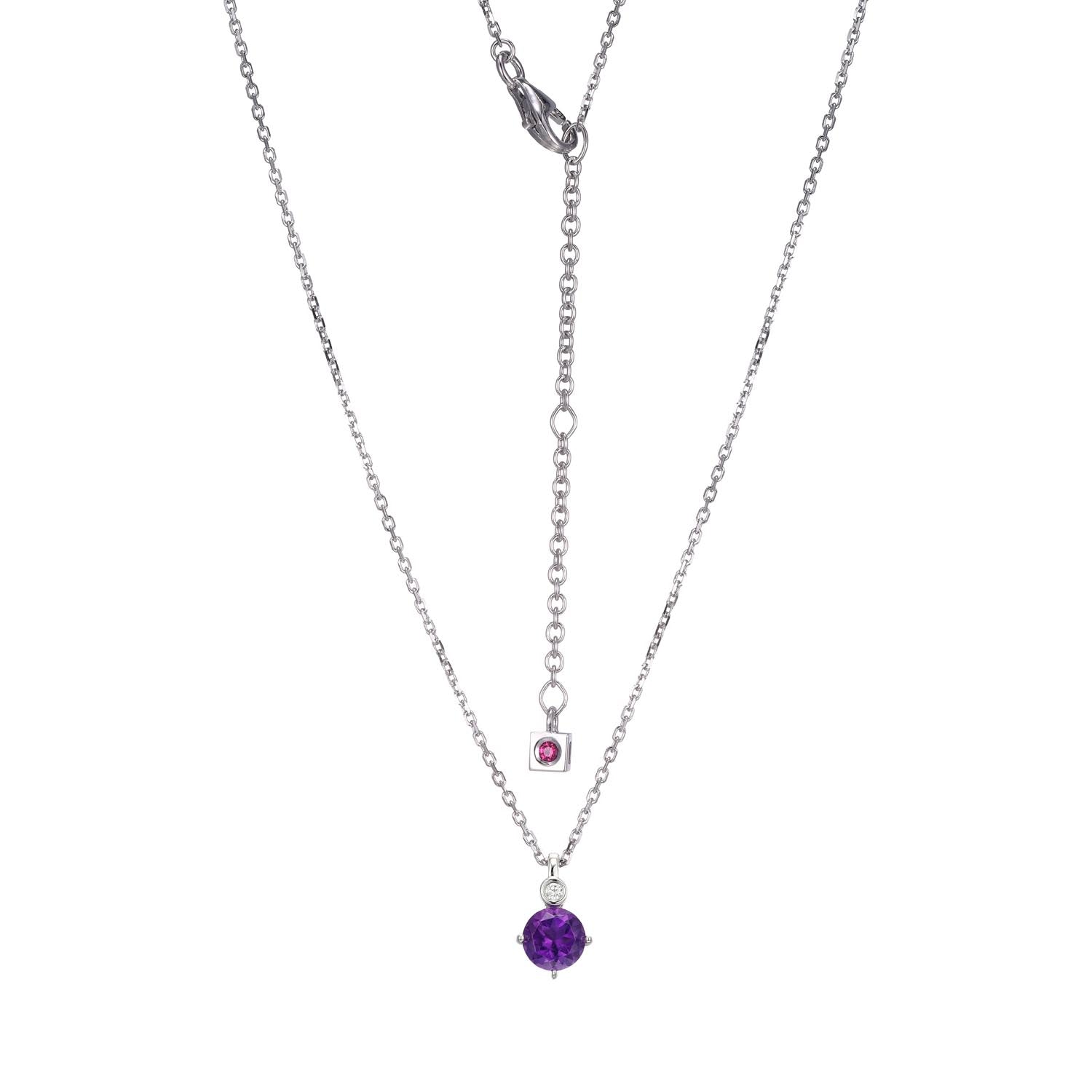 Sterling Silver ELLE "Birthstone" Rhodium Plated Genuine African Amethyst with Lab Grown Diamond 1-2Pt(F/C H-I/I1) on Faceted Diamond Cut Cable Chain 17" + 2"
