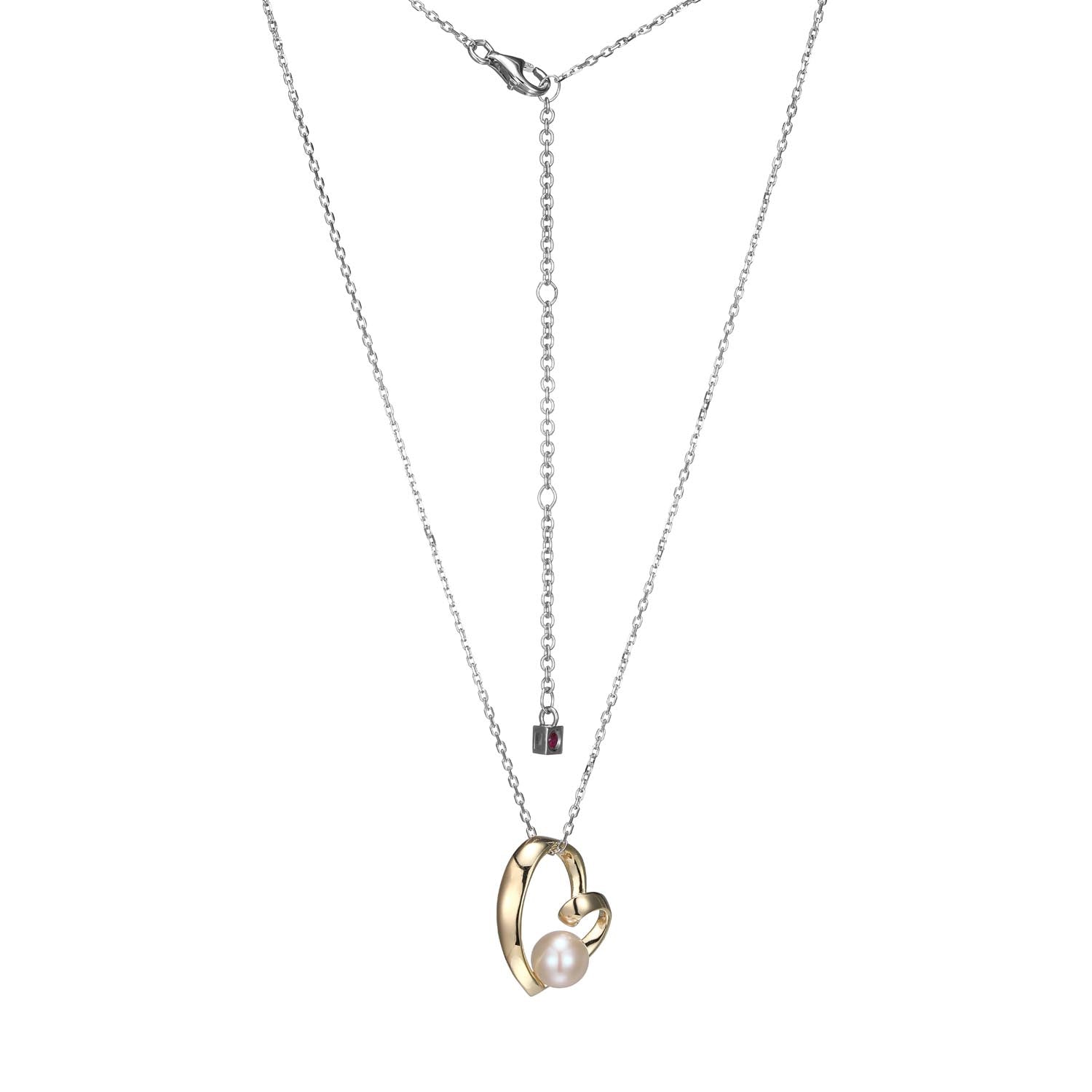 Sterling Silver ELLE "Armour" Rhodium and Yellow Gold Plated Genuine Fresh Water Pearl Heart Necklace on Diamond Cut Cable Chain 17"+3"