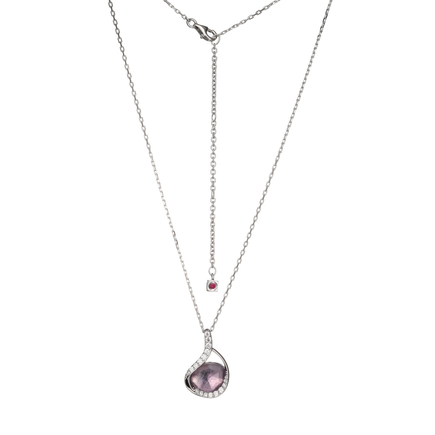 Sterling Silver ELLE "Treasure" Rhodium Plated Doublet Genuine White Crystal and Amethyst Pendant on Faceted Diamond Cut Cable Chain 17"+3"