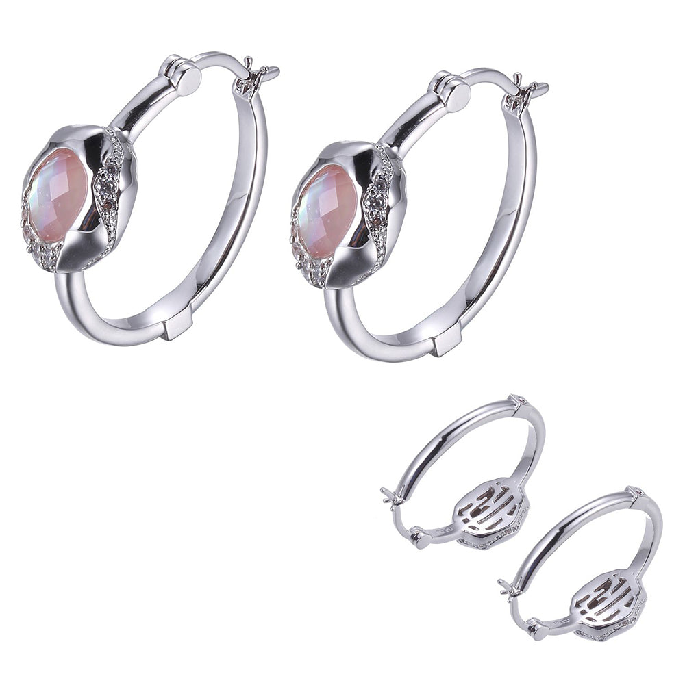 Sterling Silver Rhodium Plated Ear G Rock Crystal +Potamilus Purpurata #P1-P3(Aq) (F-C)Ov8X6X3mm and 3A CZ Rd Hoop(A1) L: 1 - 1 / 4 " W: 3 / 8 " D: 1 "