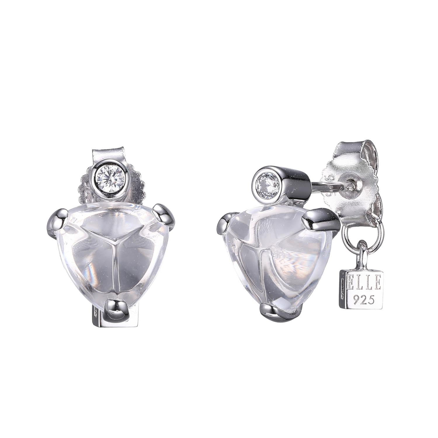 Sterling Silver Earrings Made of Synthetic White Crystal (Triangle 8X8X5mm) and CZ, Post Back, Rhodium Plated