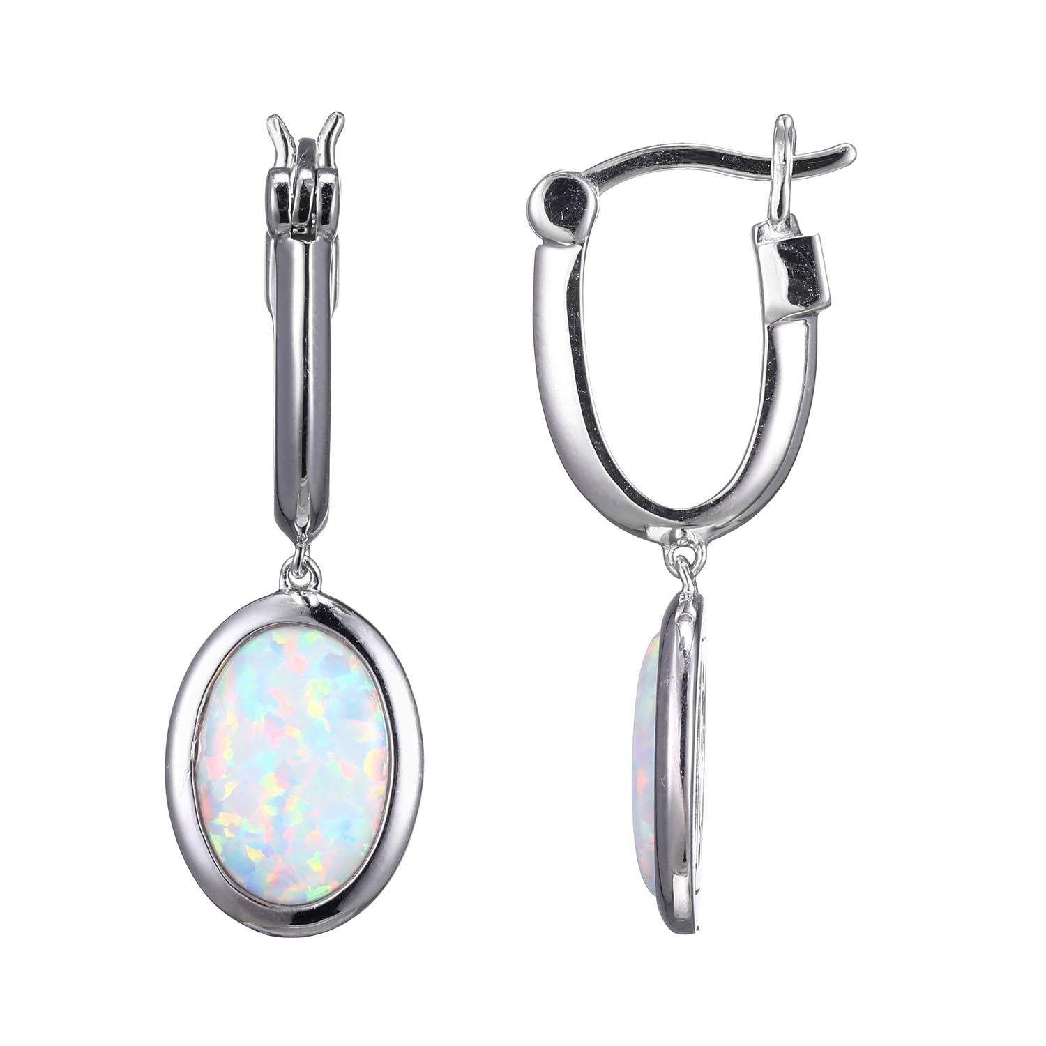 Sterling Silver ELLE "Mirage" Rhodium Plated Created 10 X 7 mm Opal Hoop Earring