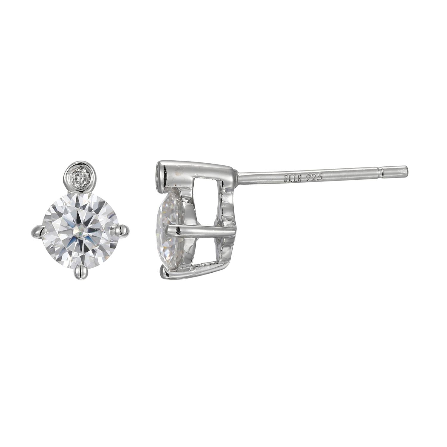 Sterling Silver ELLE "Birthstone" Rhodium Plated Genuine MoiSterling Silveranite and Lab Grown Diamond 2-1Pt(F/C H-I/I1) Post Stud Earring