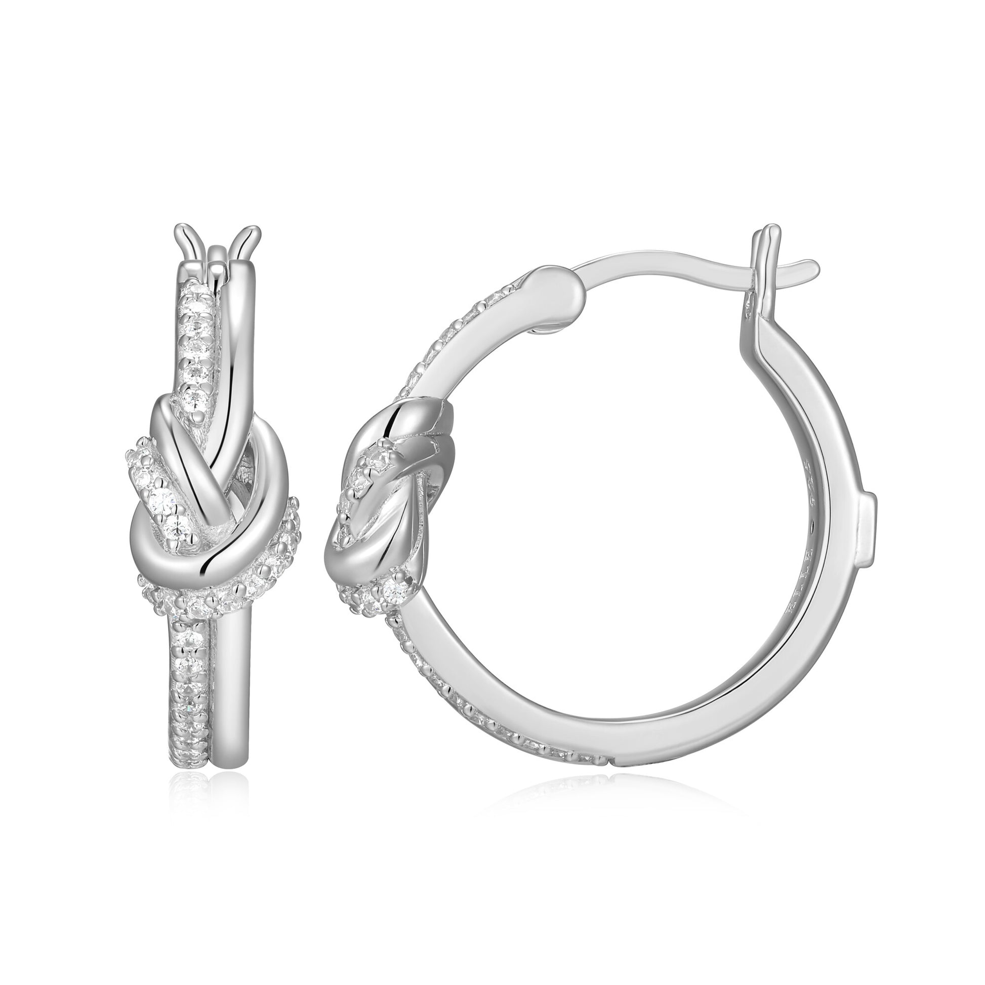 Unity Knot Hoop Earrings in Rhodium-Plated Sterling Silver