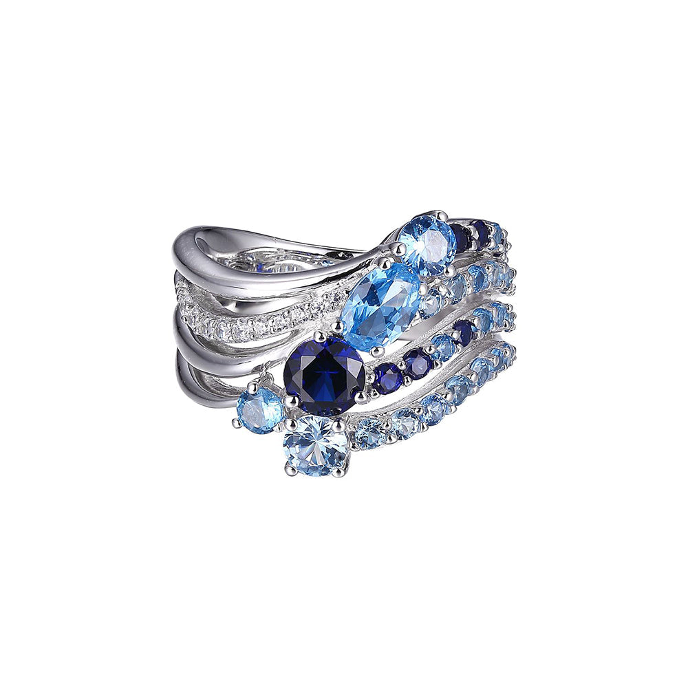 Sterling Silver Rhodium Plated Ring Synthetic Spinel and Synthetic Blue Corundum and 3A CZ RD