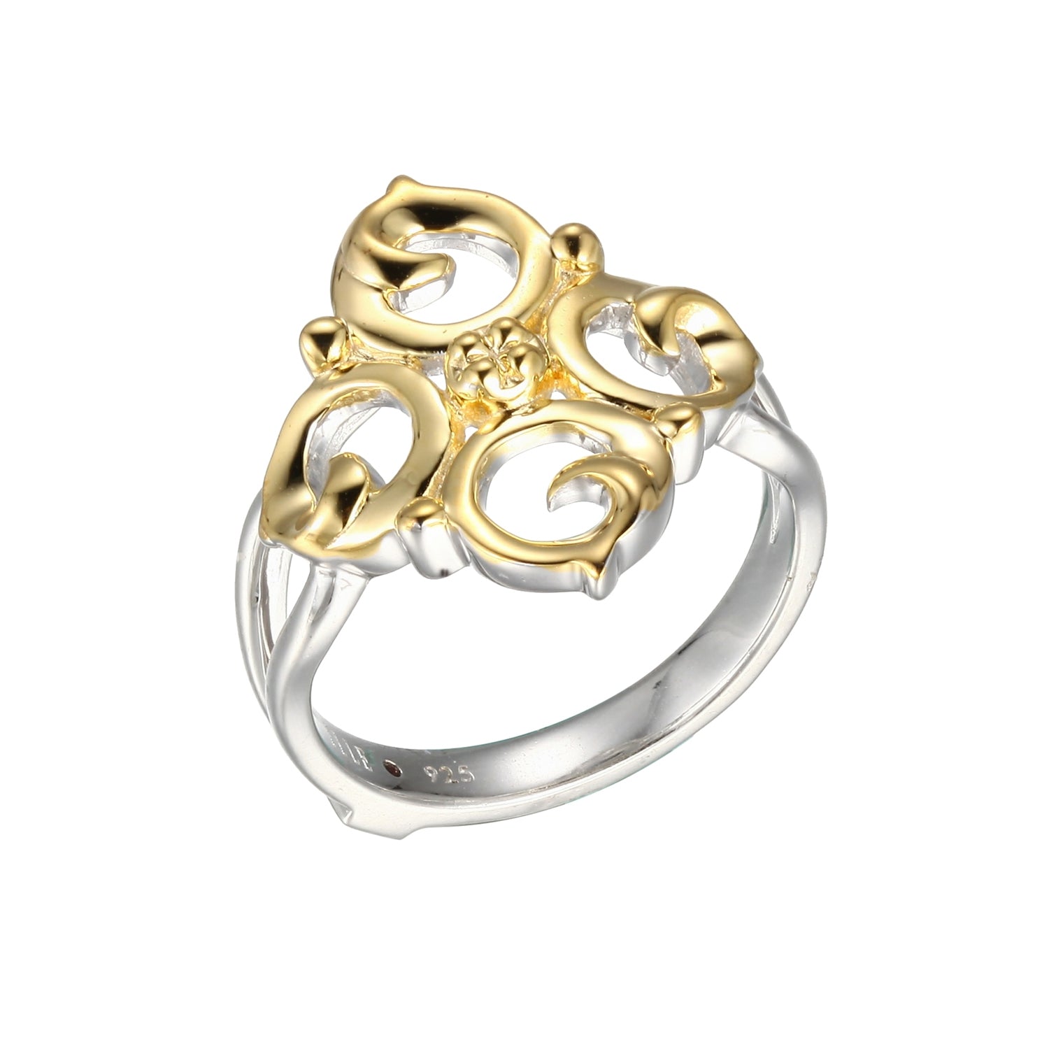 Sterling Silver Ring, Motif Size 20mm, Ring, 2 Tone, Rhodium and Yellow Gold Plated