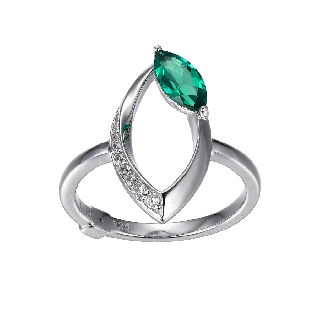 Sterling Silver ELLE "Swing" Rhodium Plated Created Emerald 8X4mm and Pave CZ RD Marquise Shape Ring
